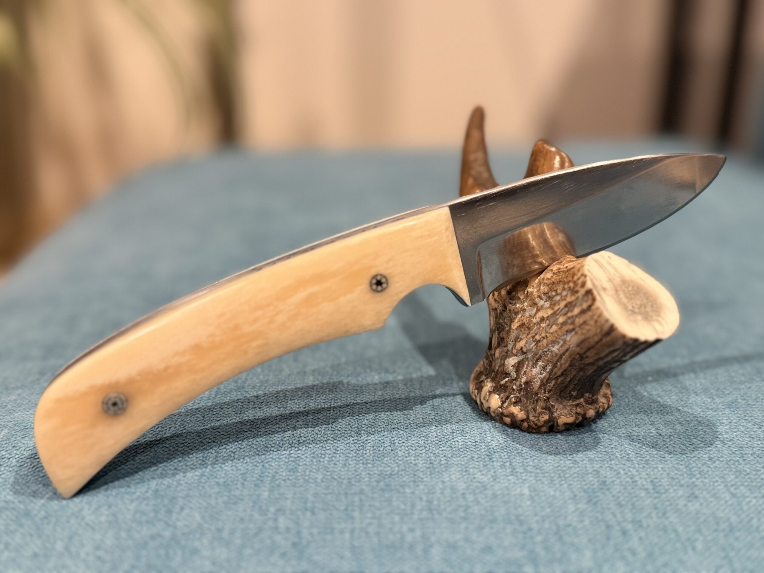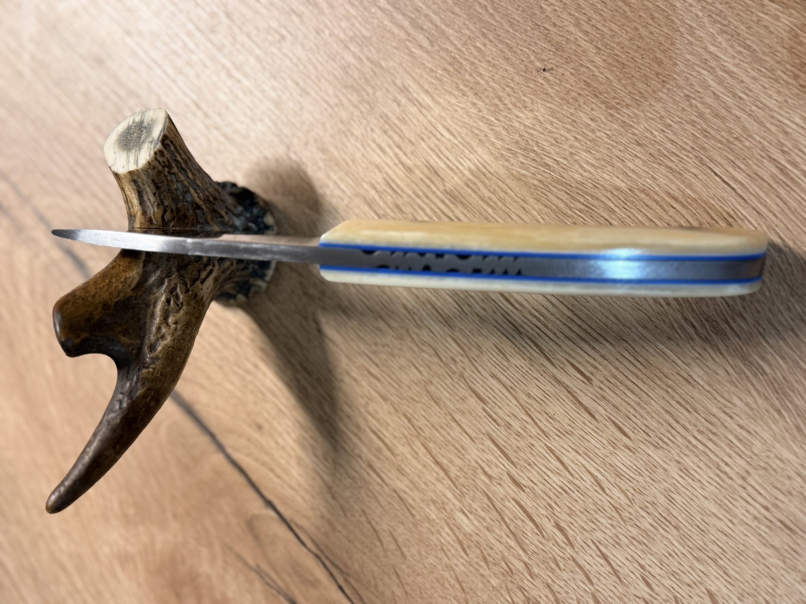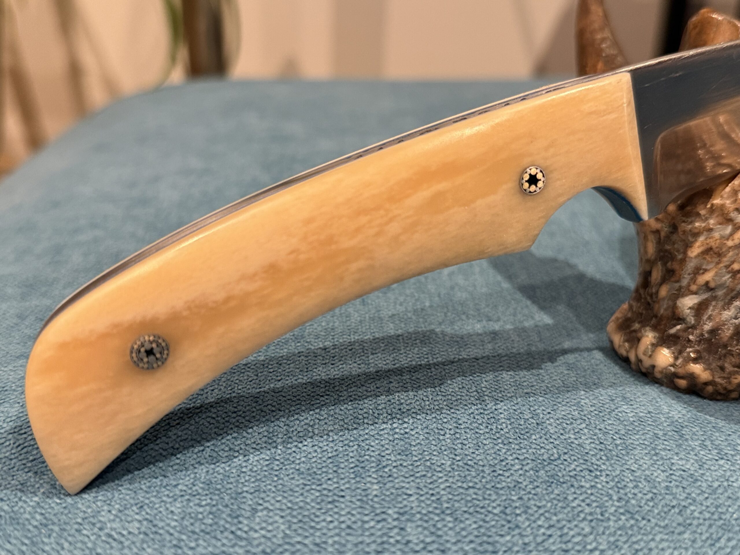 Manche en Os de Chameau avec rivets mosaique et intercalaire Bleu